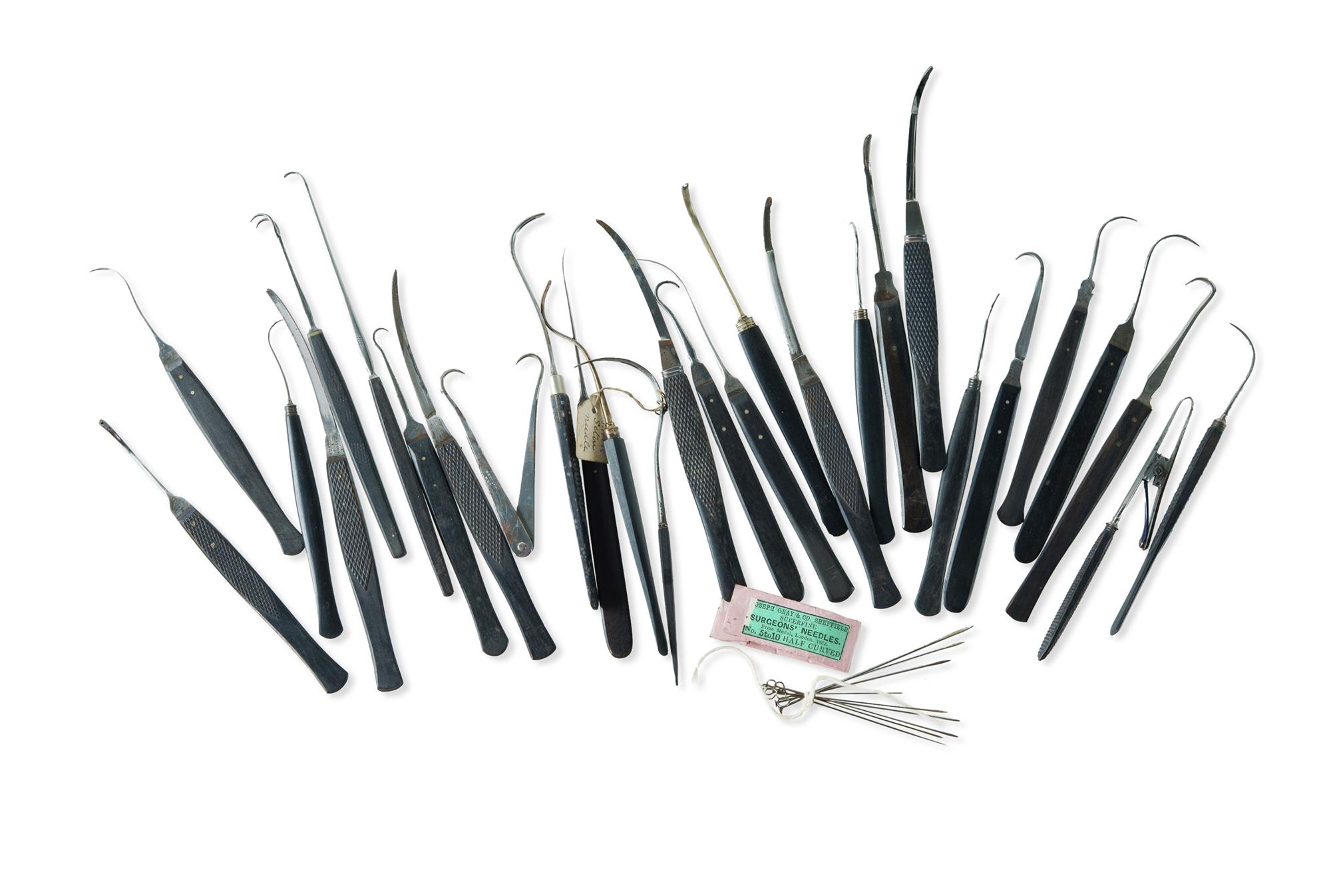 Group 19th C Operating Needles and Hooks With ebony handles. Various makers. PROVENANCE: Collection Late Kenneth F. Russell (1911-1987), Professor of Anatomy and Medical History, University of Melbourne.Estimate $100-200