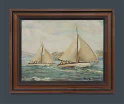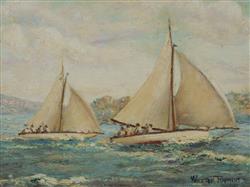 RAYMENT, Walter (working 1930s-40s) 'Sky and Shore from Robertsons Point [Sydney Harbour]' Signed lower right Oil on Canvas on Board 29x39cm PROVENANCE: The Fred and Elinor Wrobel Collection, Sydney.Estimate $100-200