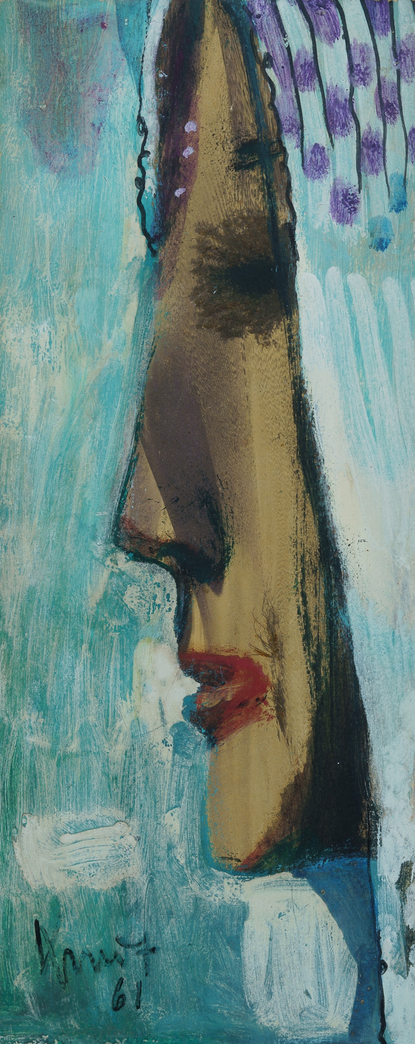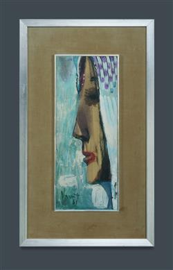 KMIT, Michael (1910-1981) Profile Portrait, 1961. Signed and dated lower left. Oil on Board 37.5x15cm PROVENANCE: Philip Bacon Galleries, Brisbane (label verso); The Estate of the Late Douglas Black, Queensland.Estimate $800-1,500
