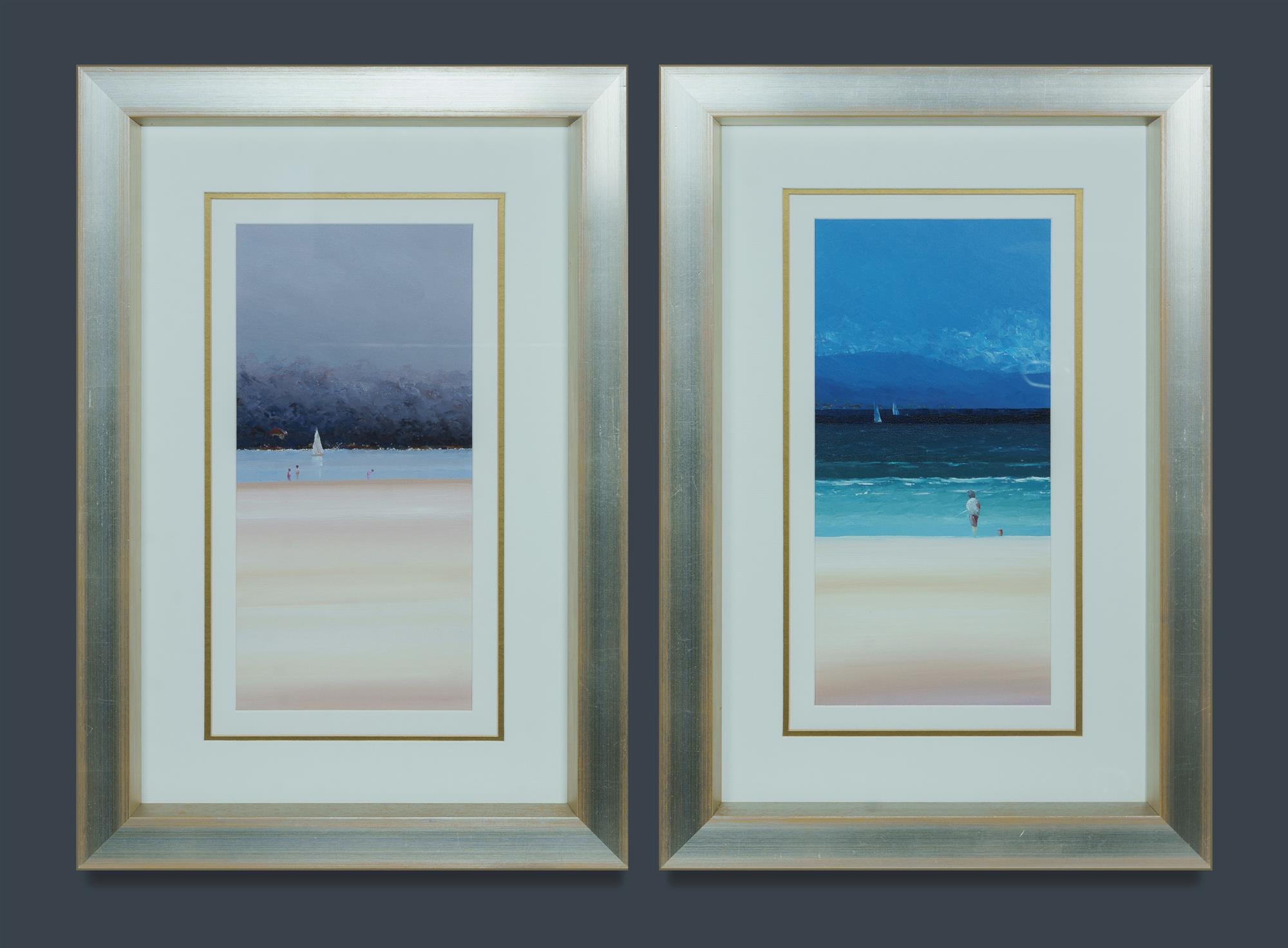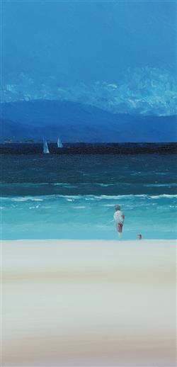 IRELAND, Howard B (b.1939) (2) 'Morning at Batemans [Bay]' and 'South Coast Fisherman' No signature apparent; old title labels verso. Oil on Canvas (2) 39.5x19cm (each)Estimate $120-200