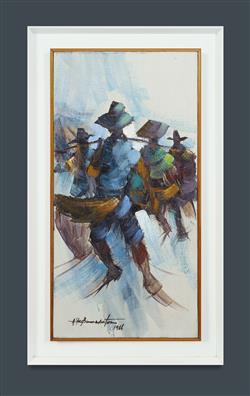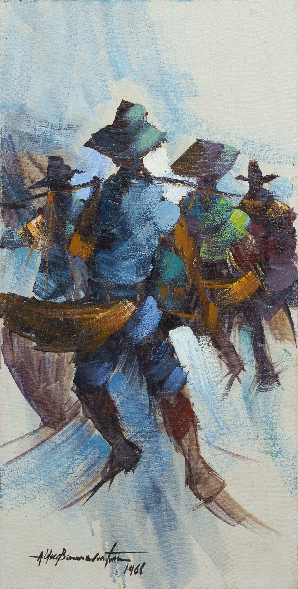 BUENAVENTURA, Alfredo (Philippines 1942-1982) Street Vendors, 1968. Signed and dated lower left. Oil on Canvas 61x30.5cmEstimate $120-250