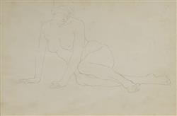 BUNNY, Rupert C W (1864-1947) Seated Nude Unsigned Pencil 20x29.5cm PROVENANCE: Tony Tuckson (then Deputy Director AGNSW); Renee Free, Sydney (gift from the above c.1968); Keith Free Collection, Sydney.Estimate $400-700
