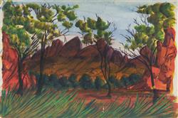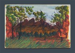 PAREROULTJA, Trevor (1941-1983) Central Australian Landscape Signed lower right. W/Clr 25.5x38cm PROVENANCE: The artist; acquired by the current owner (private collection, Sydney) whilst working regionally as a nurse c.1987-88.Estimate $80-150