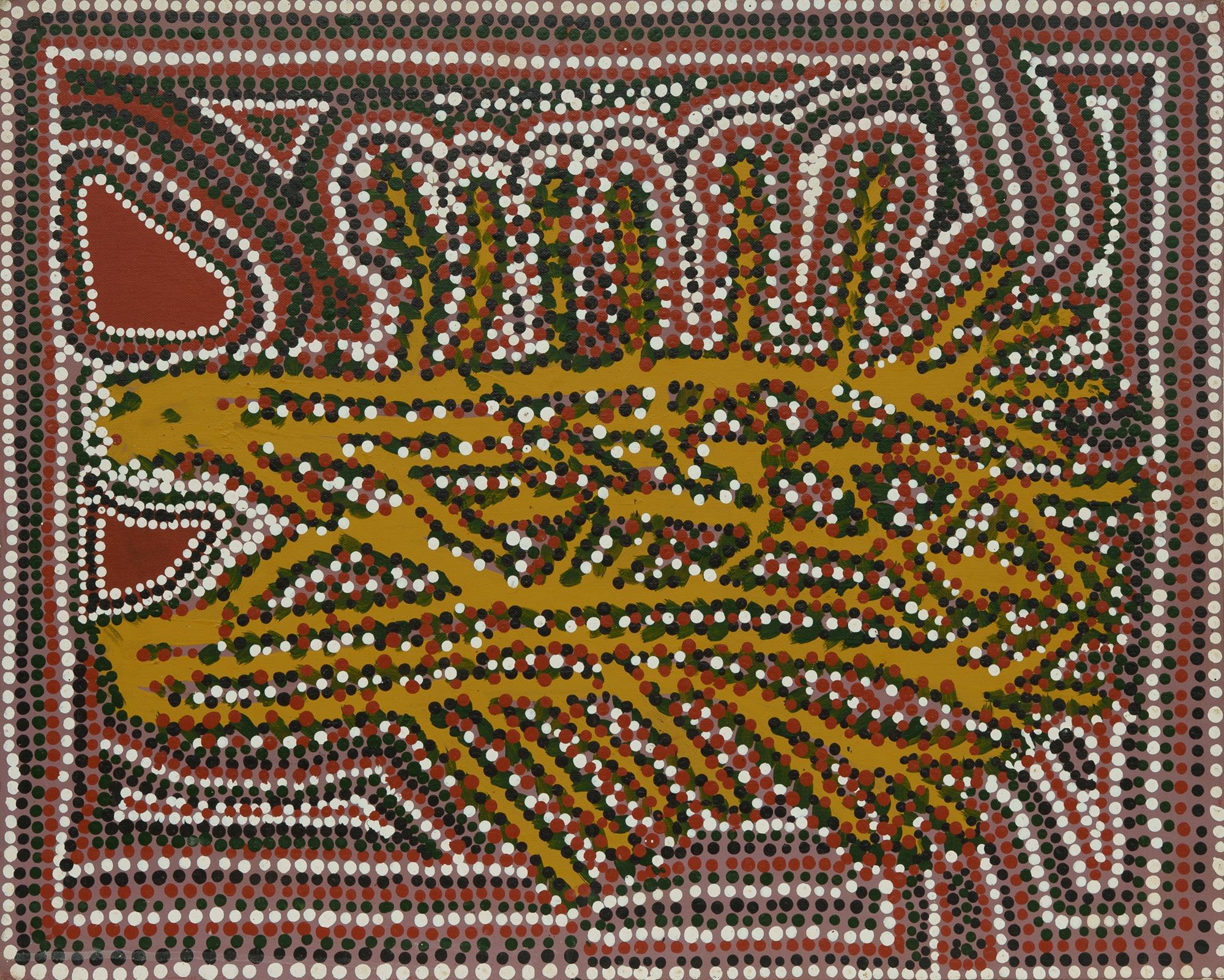 MPETYANE, Lindsay Bird (Aboriginal c.1935-2024) Untitled, 1980s. Signed verso. Acrylic on Canvas Board 76x61cm PROVENANCE: The artist; acquired by the current owner (private collection, Sydney) whilst working regionally as a nurse c.1987-88.Estimate $200-400